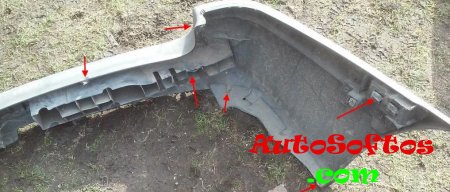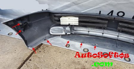 The bumper is easy to remove. We unscrew the screws in the wheel arches behind the fender liner (depending on the year of manufacture, the location changes), which fasten the corners of the bumper to the wings. We unscrew the screws around the perimeter of the lower part (spun up). With an assistant, we pull the bumper forward (we look so as not to break the wires). Remove the fog lamp connectors (if any).