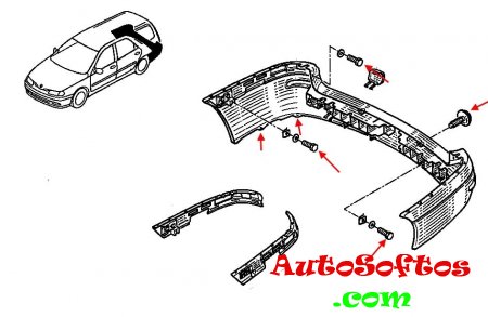 Open the trunk lid and remove the rear panel trim (in the station wagon, unscrew the screws in the trunk opening). Unscrew two nuts and one bolt behind the casing. We unscrew the screws around the perimeter of the lower part (spun up). In the wheel arches, behind the fender liner, we unscrew the screws that attach the corners of the bumper to the wings. With an assistant, we pull the bumper back.