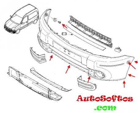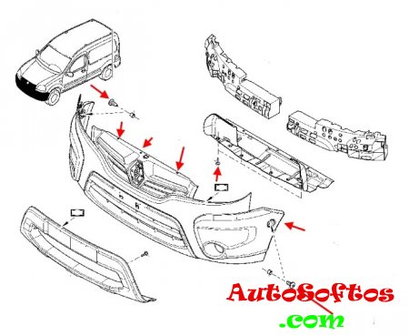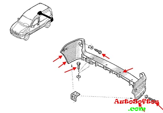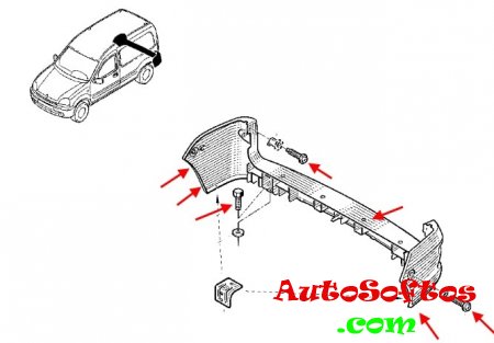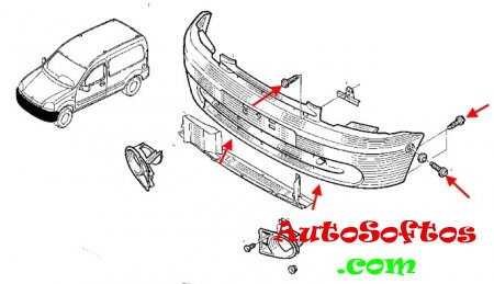 Despite the external differences (depending on the year of manufacture), the Renault Kangoo 1 (1998-2008) bumpers are mounted in approximately the same way and very simply. Everything will be clear from the images, and there is nothing special to describe here.