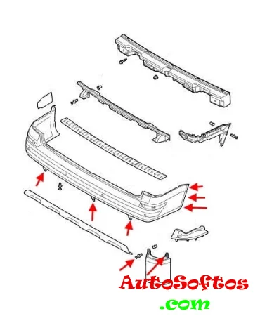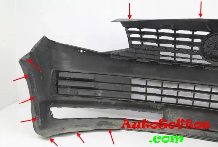 -under the hood we take out the four pistons (one screw, if any) that secure the top of the bumper.