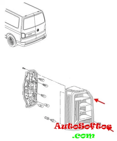 -in the trunk opening, unscrew two screws on each side and remove the rear lights.