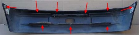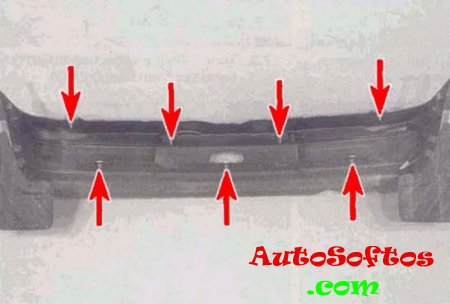 - unscrew the four upper and three lower fasteners of the bumper to the body.
