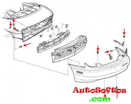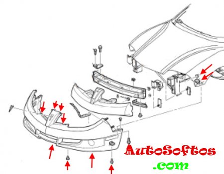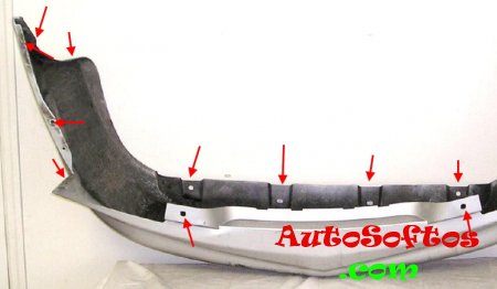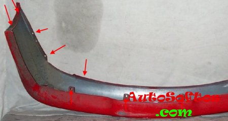 - (depending on the year of manufacture, the places where the upper part is attached differ) under the hood, unscrew the screws and pull out the pins that secure the trim, radiator grille and upper part of the bumper.