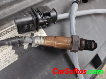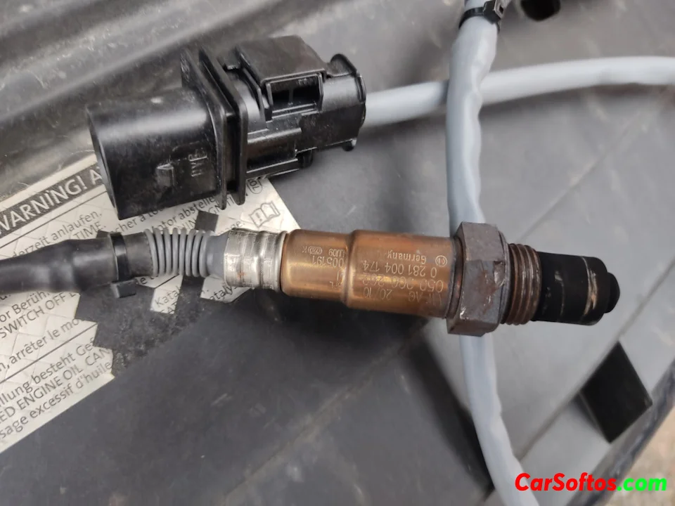 The upstream oxygen sensor (Sensor 1) monitors the exhaust gases before the catalytic converter and sends feedback to the ECU.
