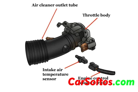 The IAT sensor measures the temperature of the air entering the engine. This information helps the engine control module (ECM) adjust the fuel mixture and ignition timing.
