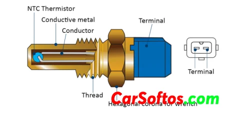 The ECT sensor measures the temperature of the engine coolant and sends this information to the engine control module (ECM).