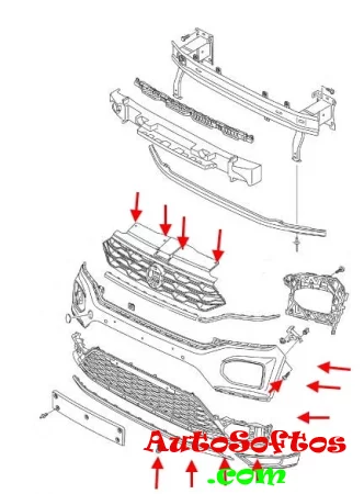 -open the hood and unscrew the screws (screwed from top to bottom) that secure the upper part of the bumper.