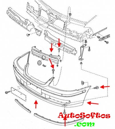 -under the hood, unscrew the screws that secure the radiator grille and the top of the bumper.