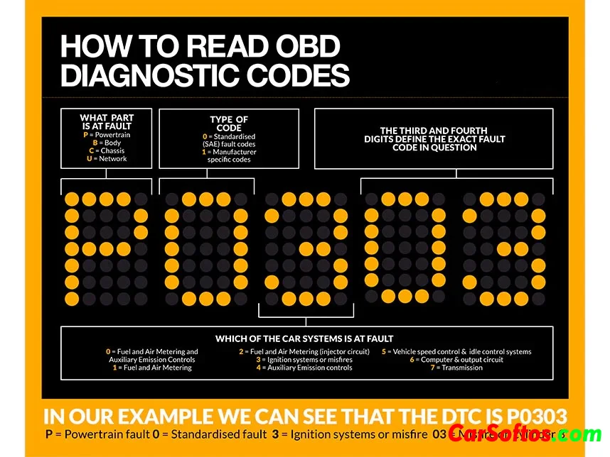 P0303 means the ECU detected combustion problems in Cylinder 3.