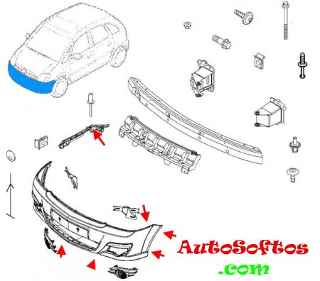 -Unscrew the screws that secure the lower part (spun up). -from the engine compartment (engine side) Unscrew the four nuts that secure the bumper amplifier to the spars.