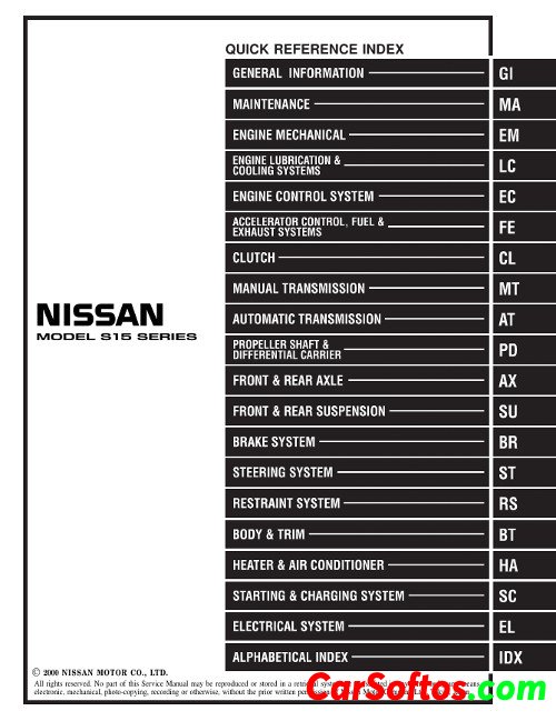 Maintenance and repair manual for a 2001 Nissan Silvia S15 series.