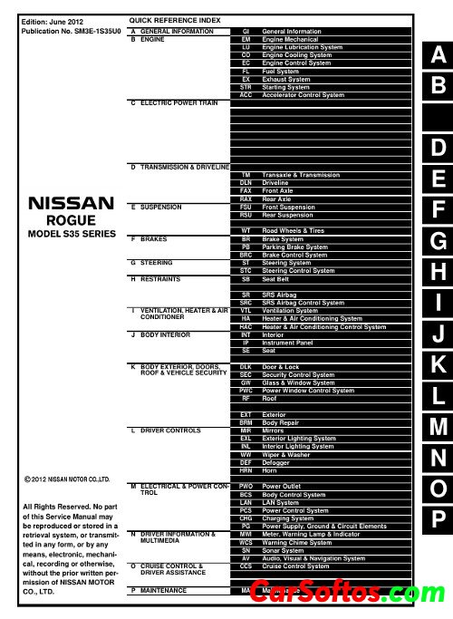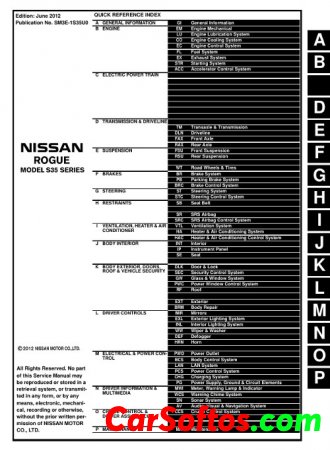 Collection of maintenance and repair manuals for the Nissan Roque S35 series 2008-2013.