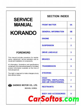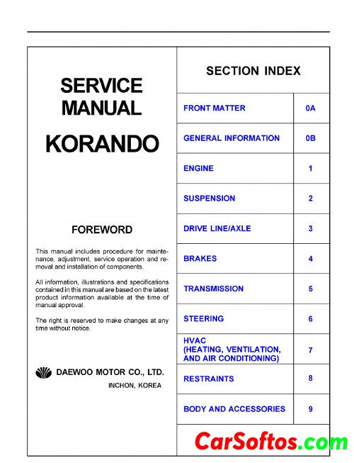 Service Manual SsangYong Korando 1996-2006