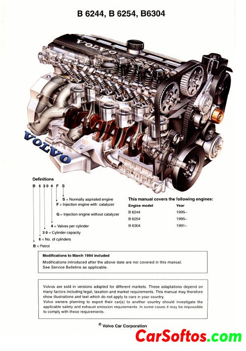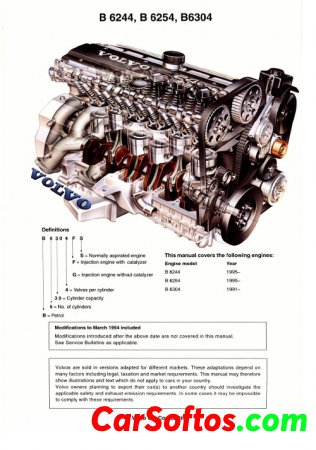 Maintenance and repair manual for Volvo engines B 6244/6254/6304.