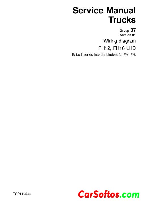 Electric equipment diagrams for Volvo FH12/FH16 trucks with left hand drive.