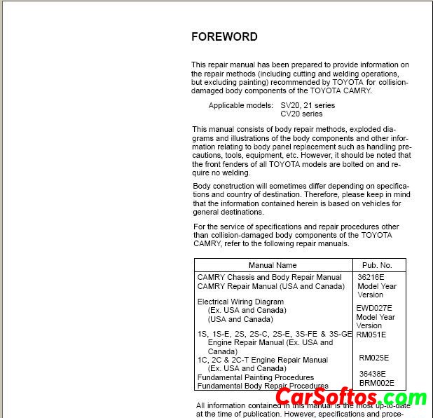 - collision damaged body repair manuals (BRM)