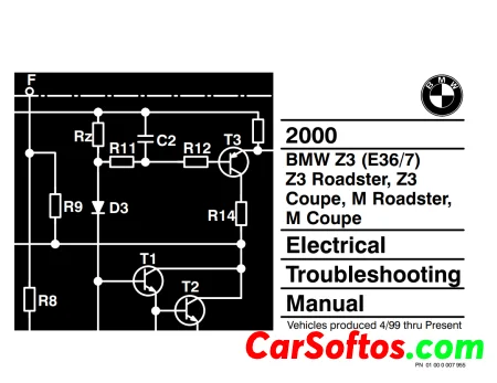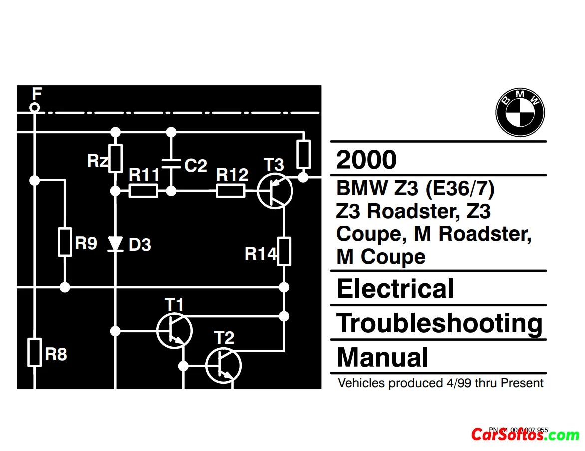 Electrical troubleshooting manual for 2000 BMW Z3 vehicles. It contains schematics, component locations, and other reference information to assist with electrical system troubleshooting and repair. The manual covers topics such as the charging system, engine control systems, airbags, lighting systems, and various comfort and convenience accessories. It provides technicians with a technical resource for diagnosing and solving electrical issues.