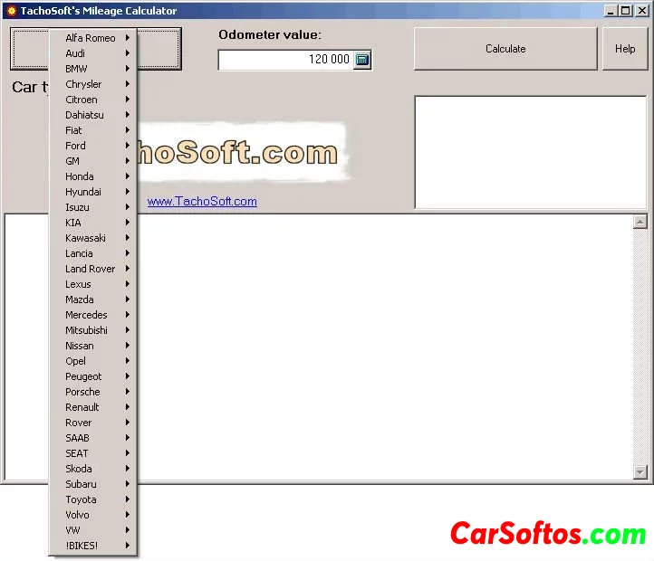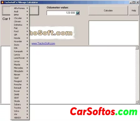 Description: TachoSoft is a mileage calculator. It is currently one of the world's largest digital odometer mileage calculators. It covers over 2108 car models! It is easy to use, anyone can work with it - from beginner to professional.