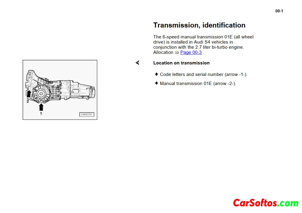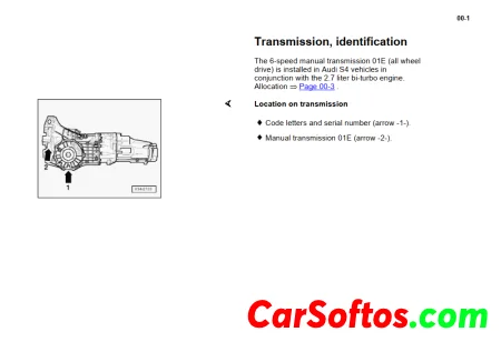 The document describes the 5-speed 012 front wheel drive manual transmission. It provides information on the transmission code letters, application models, gear ratios, capacities, and specifications. Code letters include CTE, DHW, CTJ, and CWY. Gear ratios and final drive ratios are listed for each. Transmission applications include various Audi A4 models from 1994-1996 with 1.8L and 2.8L engines. Capacities such as oil quantity and specifications such as clutch size are also noted.
