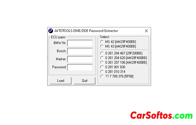 A program that allows you to extract the ISN number from a BMW DME or DDE dump. Supports blocks: