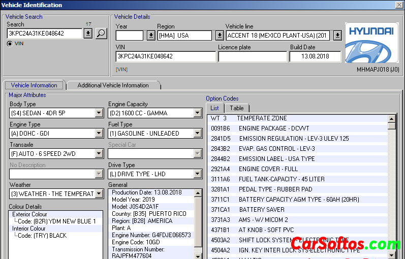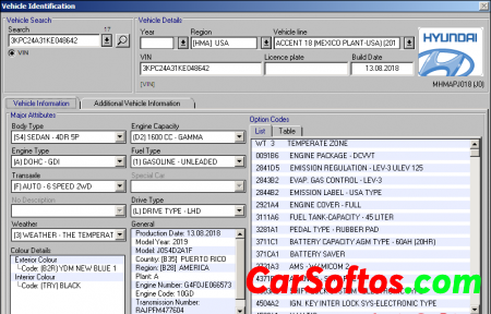 Description: Electronic catalog of spare parts for various Hyundai cars. All models produced and / or produced by Hyundai Motor Company are represented, except for cars intended for the intra-Korean market (for example, Starex), the models are divided into groups (cars, jeeps / minivans / minibuses, commercial) and by region. In the catalog, it is possible to identify the vehicle by VIN (with filtering of part numbers), search by part name (partial or full), original number, and also show the applicability of parts. There is a list of options with decoding, making it easier to select the desired number in the absence of a VIN filter.