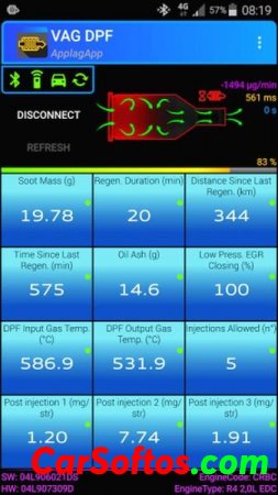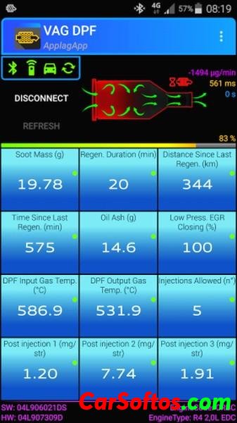 Description: With this application, you can find out if the filter is really in the process of regeneration, if the regeneration is pending, how many kilometers you have traveled since the last regeneration, etc.