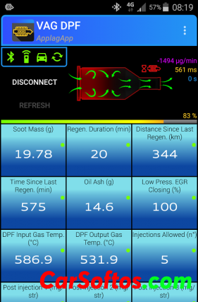 Description: With this application, you can find out if the filter is really in the process of regeneration, if regeneration is pending, how many kilometers you have traveled since the last regeneration, etc.