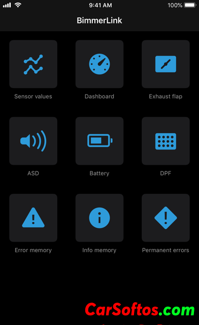 Diagnose your car as would otherwise be possible only by your Service Partner. In contrast to generic OBD apps, BimmerLink allows you to read trouble codes from all control units in your car. Existing trouble codes can be cleared easily and besides the error memory you can also read errors from the info memory and the permanent error memory.