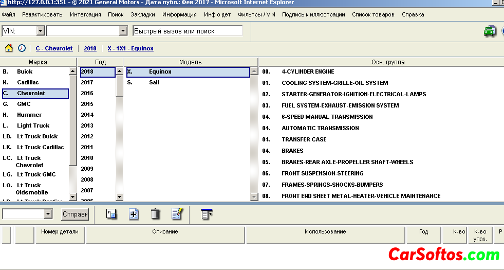Description: GM LAAM EPC - catalog of original numbers of spare parts and accessories for passenger cars, jeeps and minibuses of General Motors manufactured on the markets of Latin America, Africa and the Middle East. The catalog contains illustrations of components and assemblies of cars, which, depending on the selected model, show all the spare parts belonging to them. Also, for the selected model of General Motors cars, you can select the numbers of original accessories.