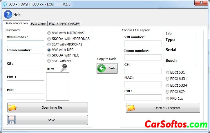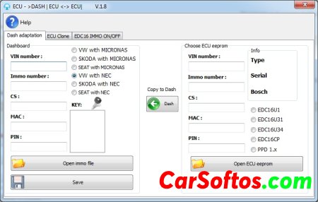 The VAG Dash-Ecu Teacher 1.8 program supports the following panels and blocks:Instrument panels:VW with Micronas and NEC
